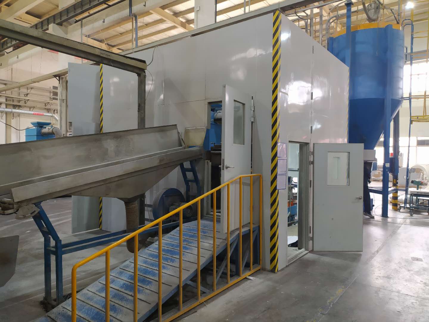 切(qiē)粒機安裝設備隔聲罩(可拆卸式),室內安裝(zhuāng)照明係統, 在對應(yīng)的位置開(kāi)設隔(gé)聲門供日常檢(jiǎn)維修。設計有L型大移門,供振(zhèn)動篩的(de)快(kuài)速移出和更換。